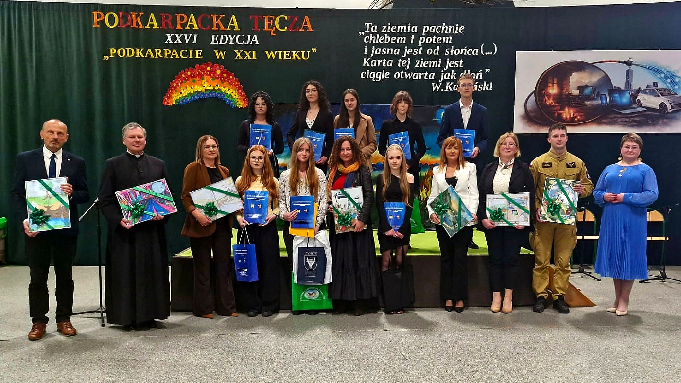 W czwartek, 16 kwietnia 2026 r. w Zespole Szkół Zawodowych im. Kardynała Stefana Wyszyńskiego w Dynowie odbył się finał 26. edycji Wojewódzkiego Konkursu Podkarpacka Tęcza pod hasłem: Podkarpacie w XXI w.